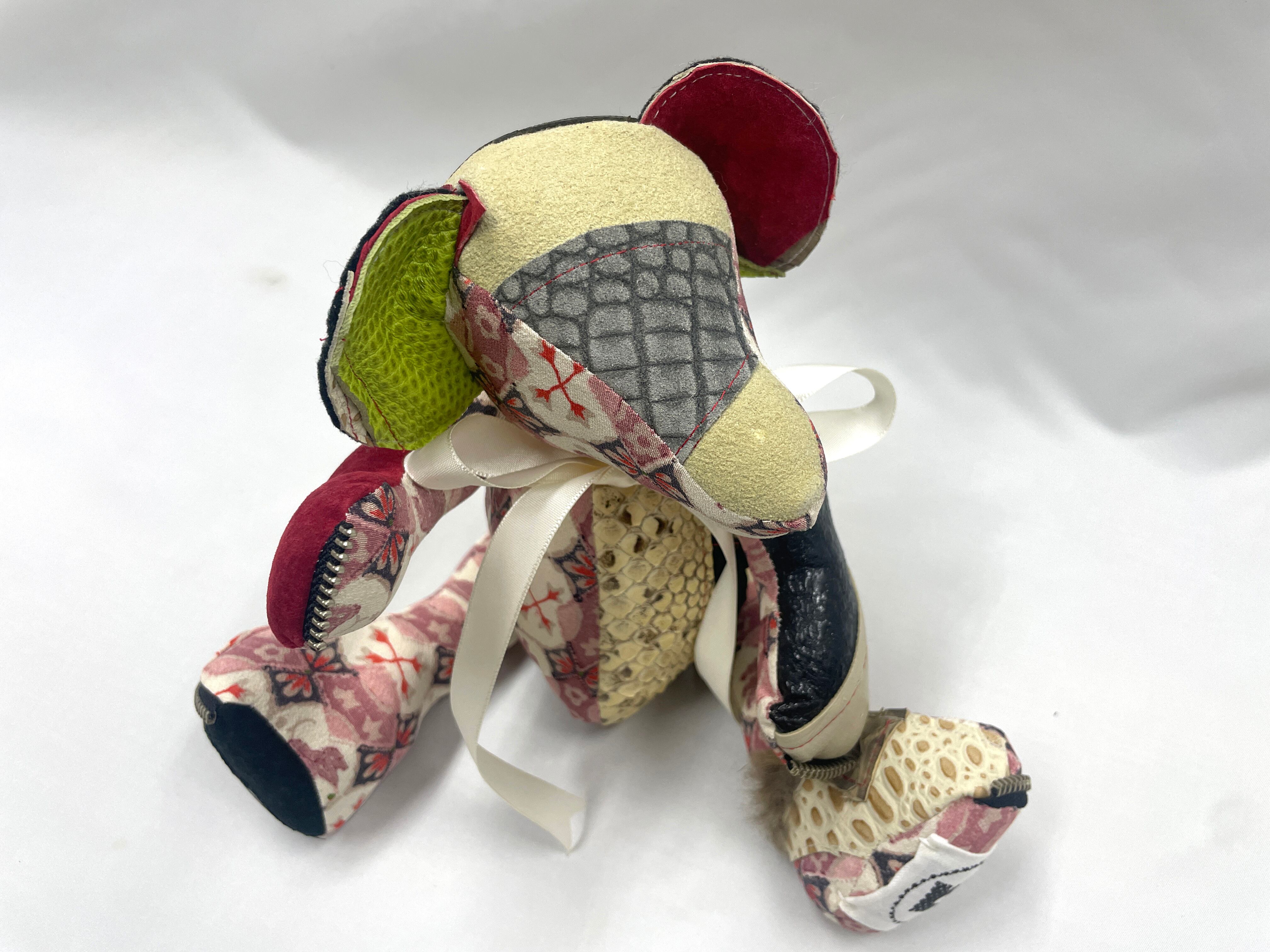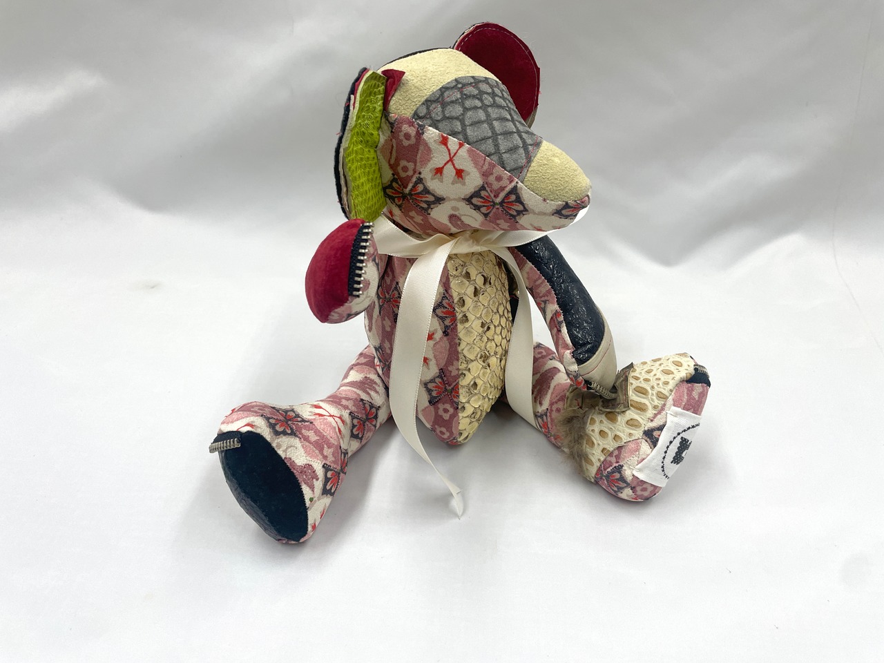 一点物!着物とレザーのパッチワークテディベア