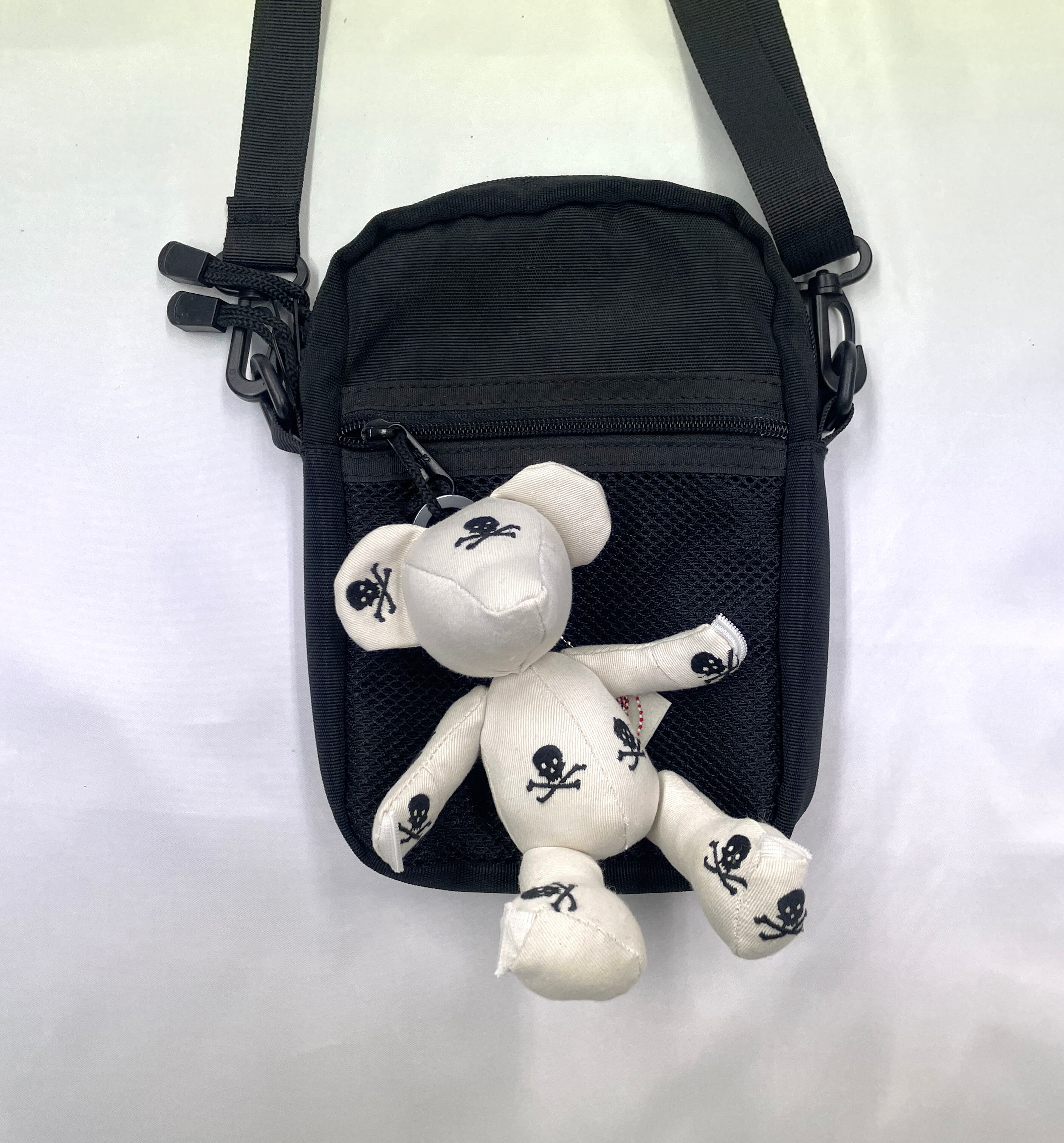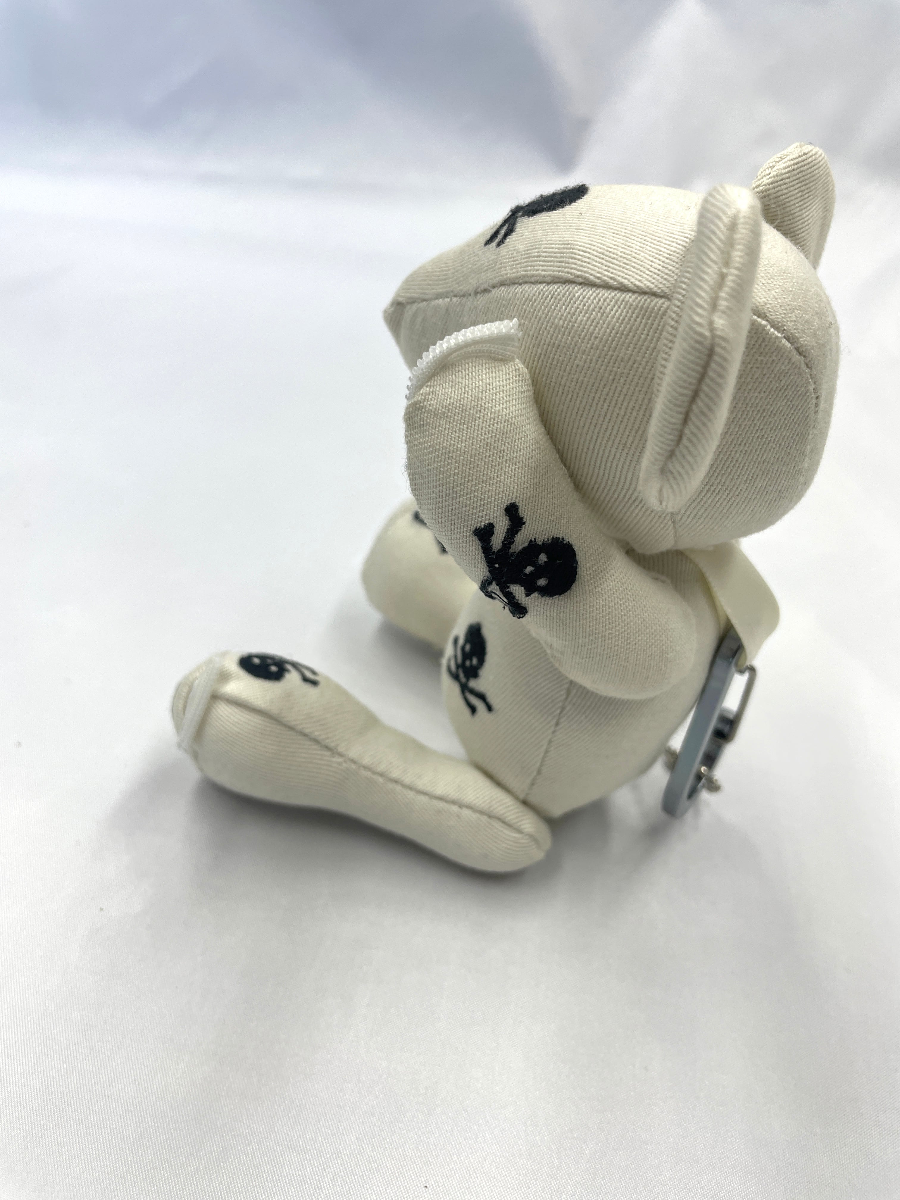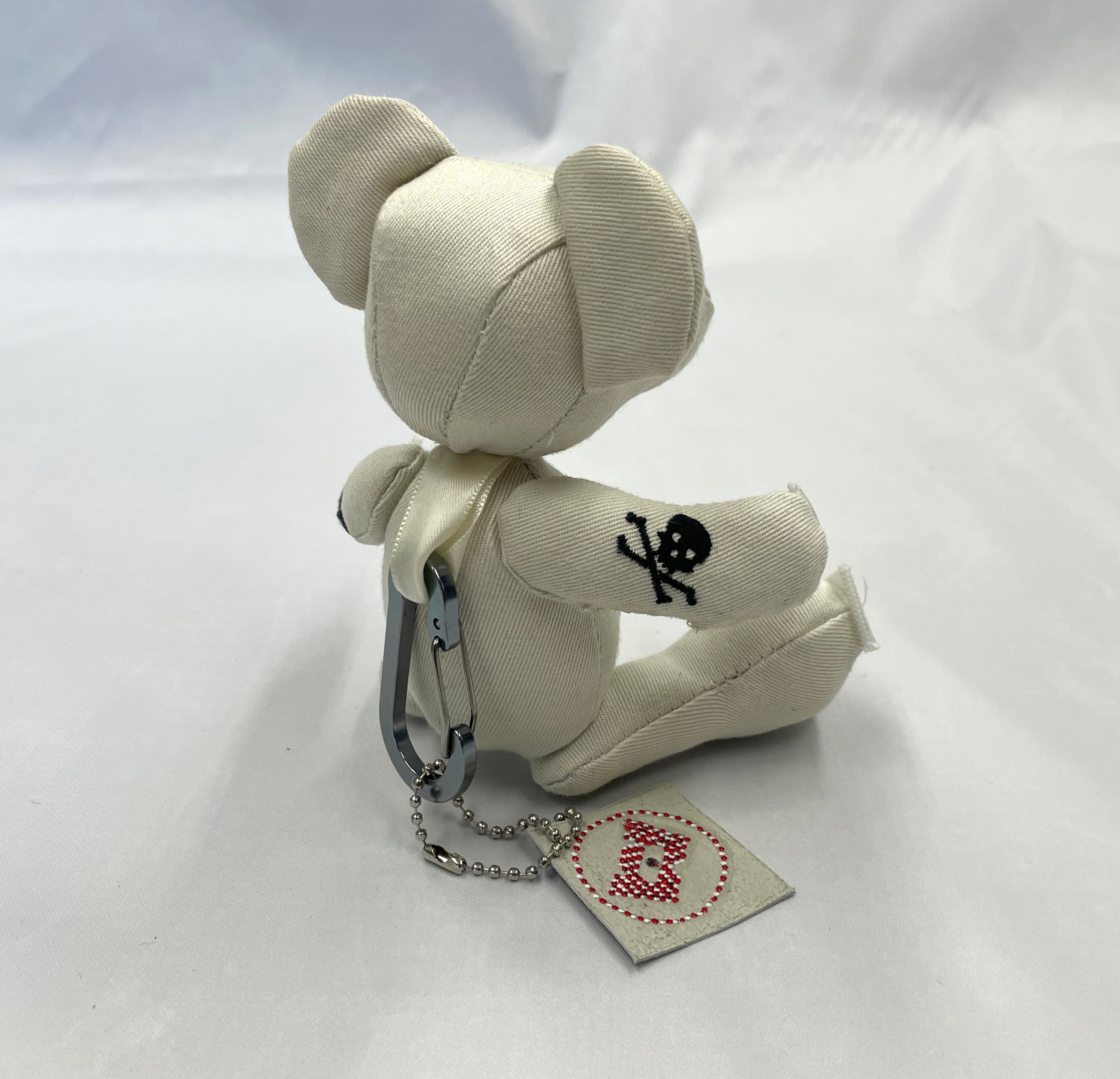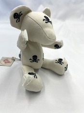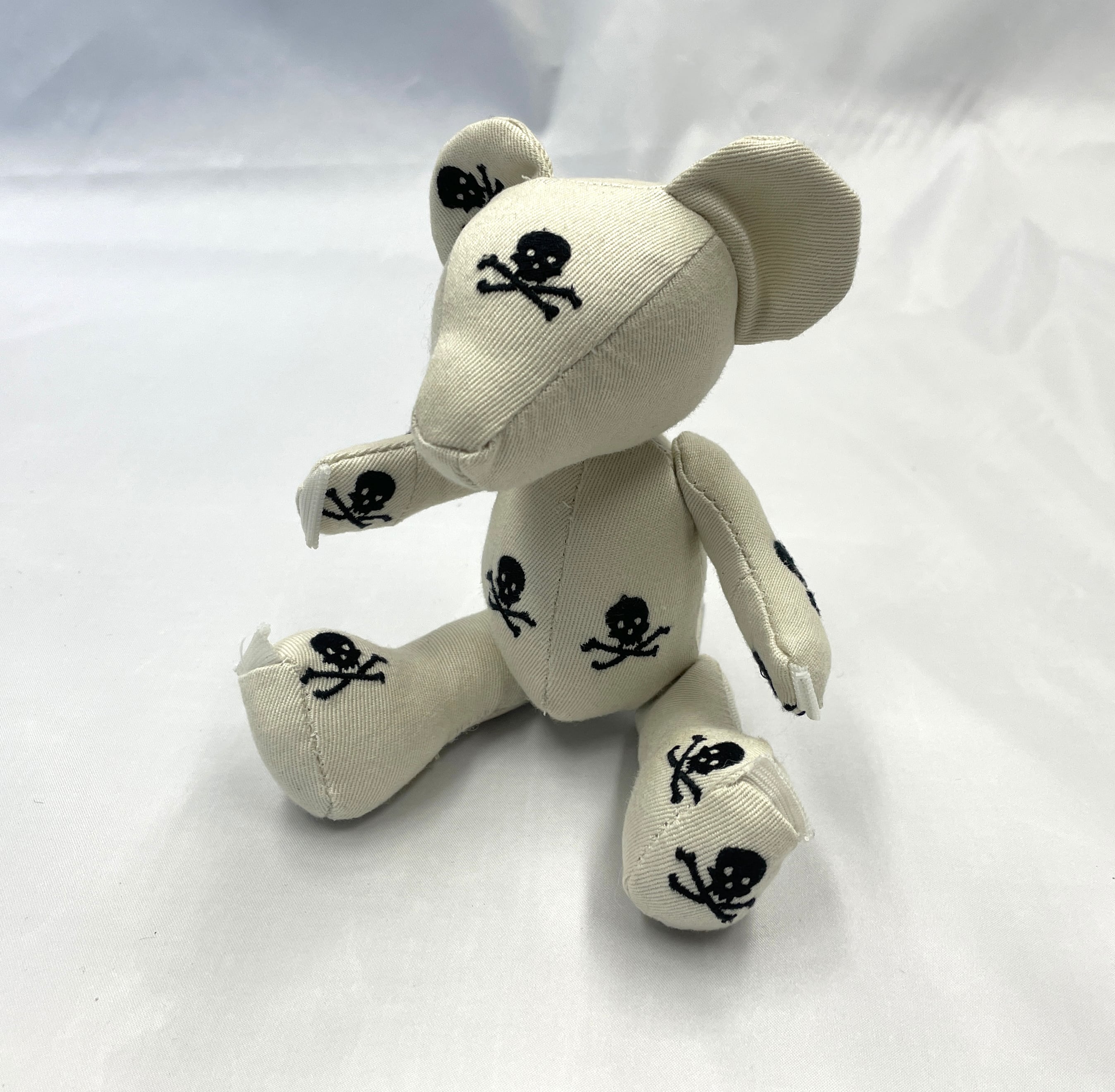 計算された配置: 小さなボディのどこから見てもドクロと目が合うよう、裁断からこだわって制作。可愛らしさとロックなパンク精神が共存する、大人にこそ似合う一匹です。