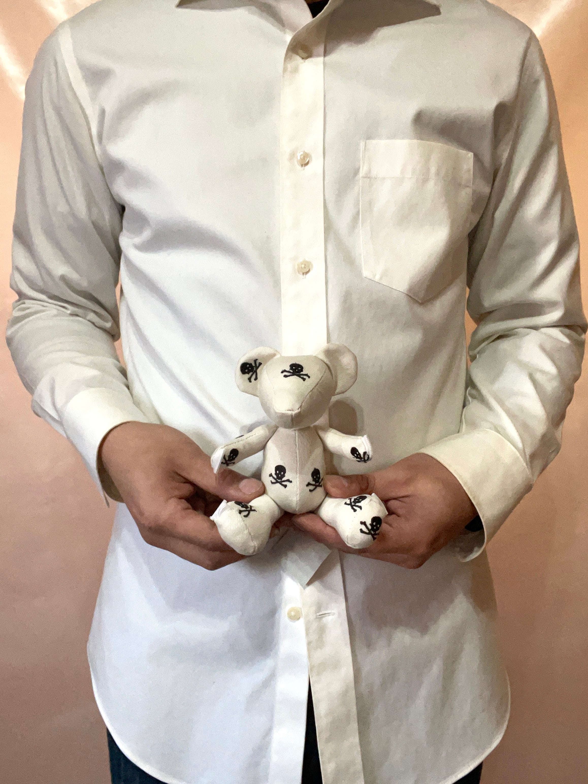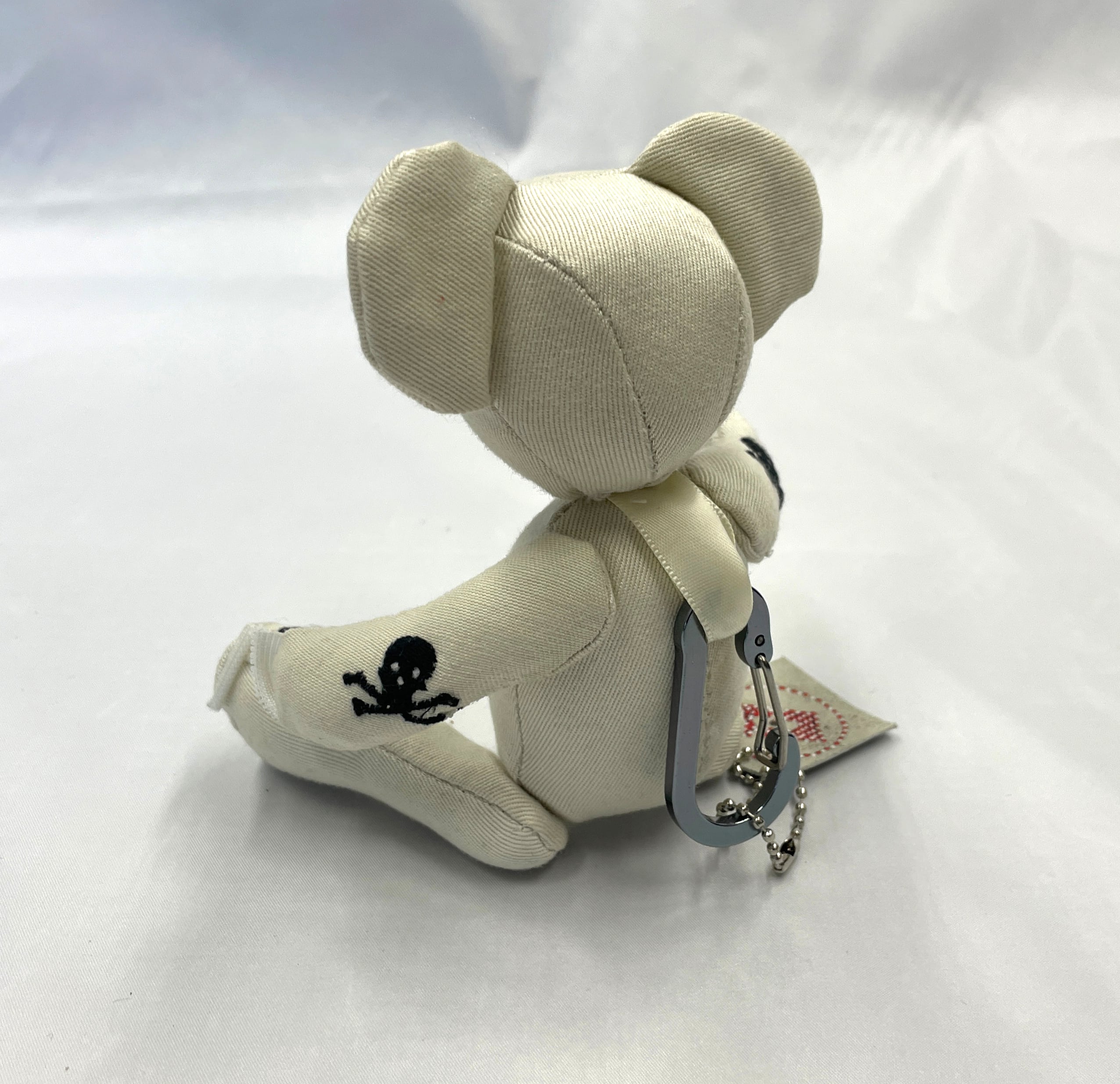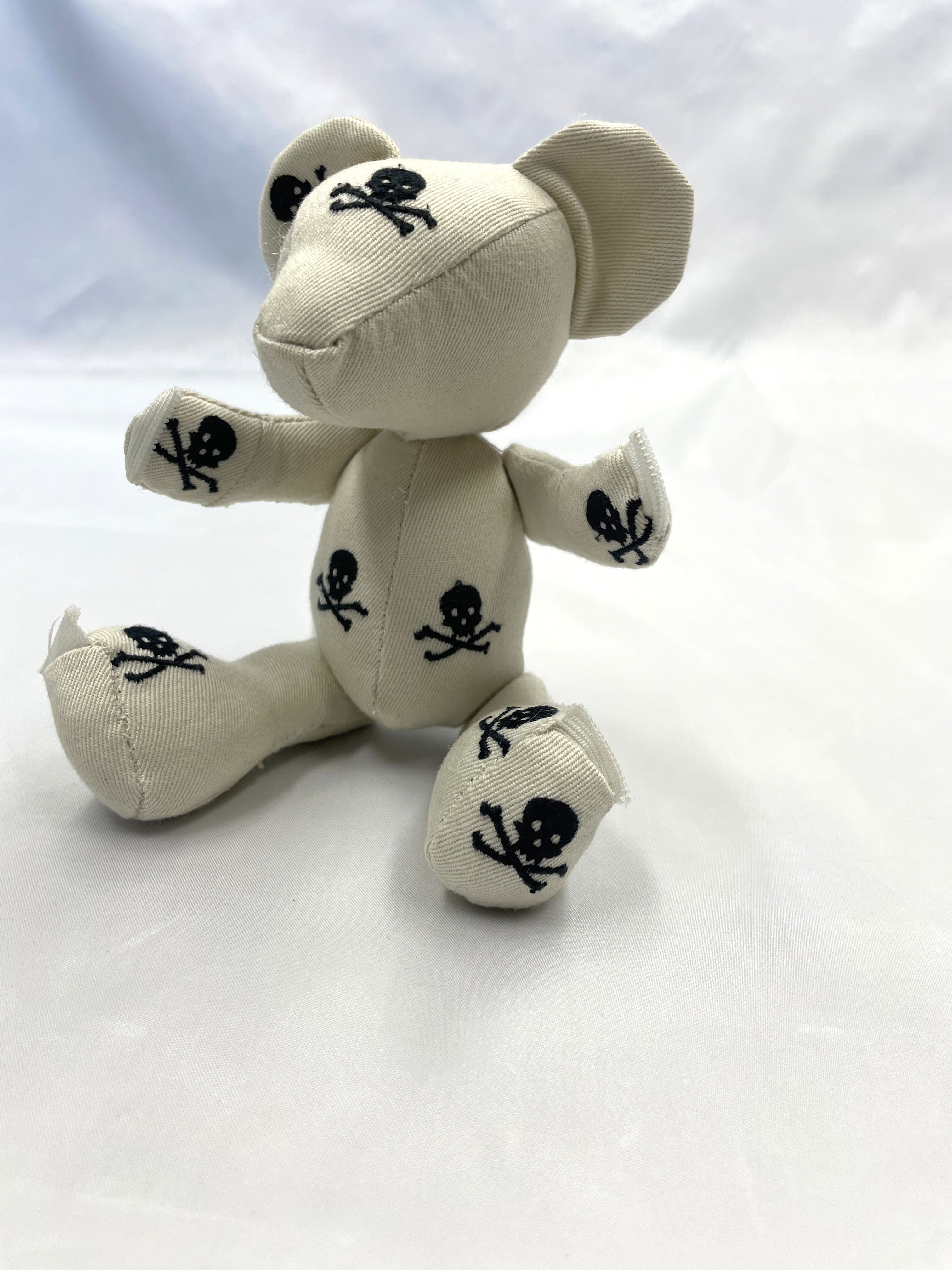 ラルフローレンの希少なスカル刺繍チノパンを贅沢に解体し、手のひらサイズのテディベアへと昇華させたリメイク作品です。